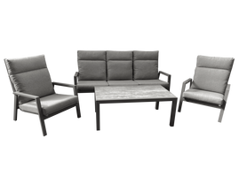 Håndflettet i kunstrotting på aluminiumsrammer.