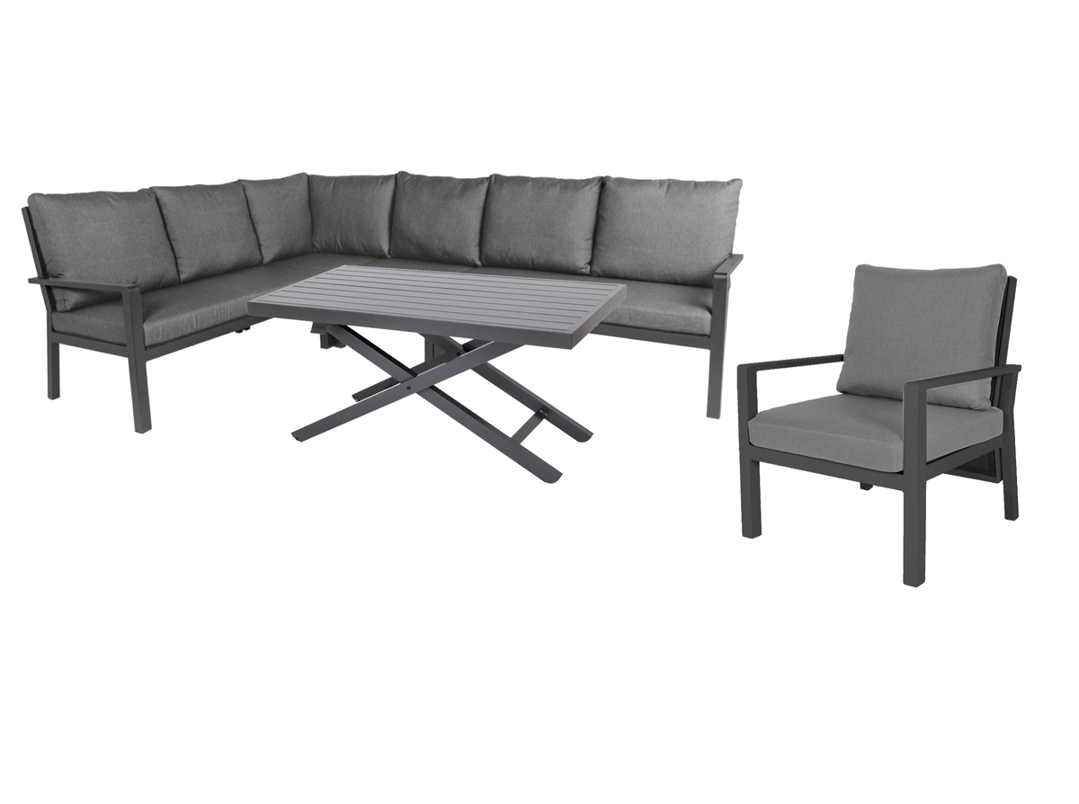 Rammen er laget i SORTLAKKERT aluminium, et lett og værbestandig materiale som egner seg perfekt til hagemøbler.