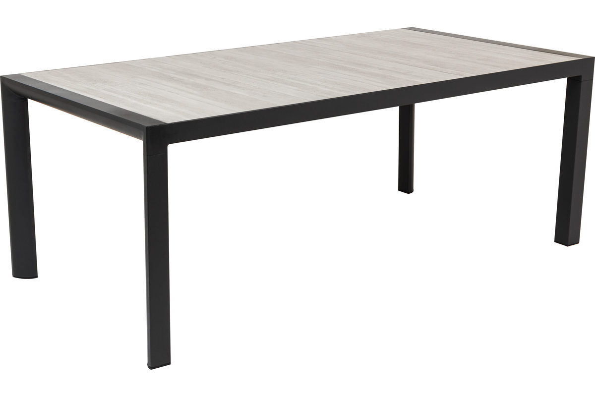 Eksklusivt spisebord i sortlakkert aluminium og bordplate i keramisk flis.