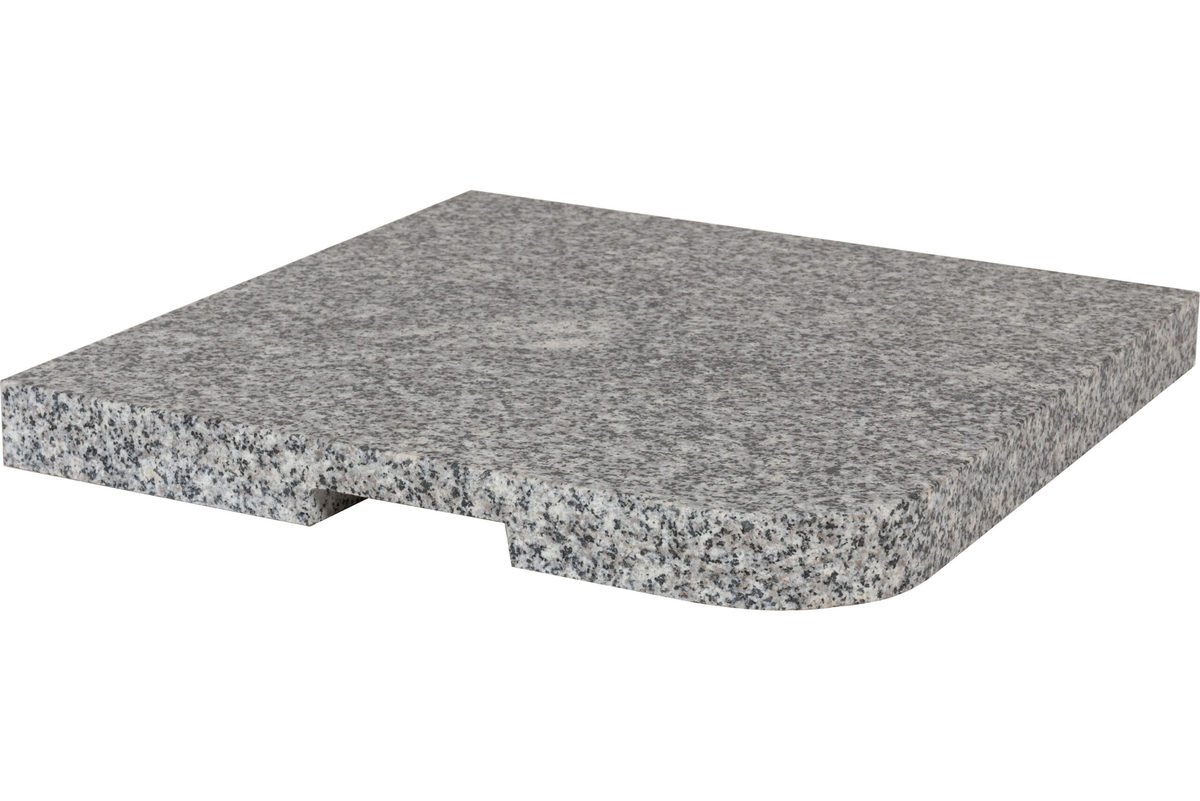 Parasollfot for fri-arms parasoller i lys polert granitt. Utsparring/håndtak i ene siden.